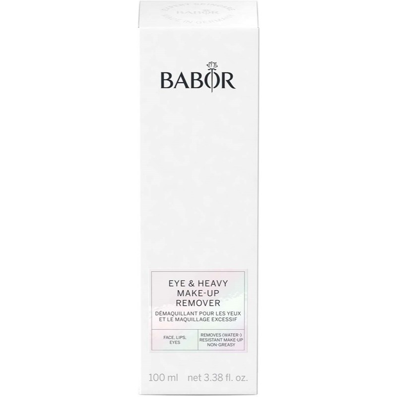 BABOR Eye & Heavy Make Up Remover er en to-fase renseprodukt til øjne og ansigt. En mild formel med udvalgte olier, der grundigt fjerner vandfast makeup, samtidig med at den er skånsom mod huden og vipperne. Beriget med beroligende aloe vera, provitamin B5, E-vitamin og natlysolie. Efterlader huden, øjnene og læberne helt rene uden at efterlade en fedtet rest på huden.