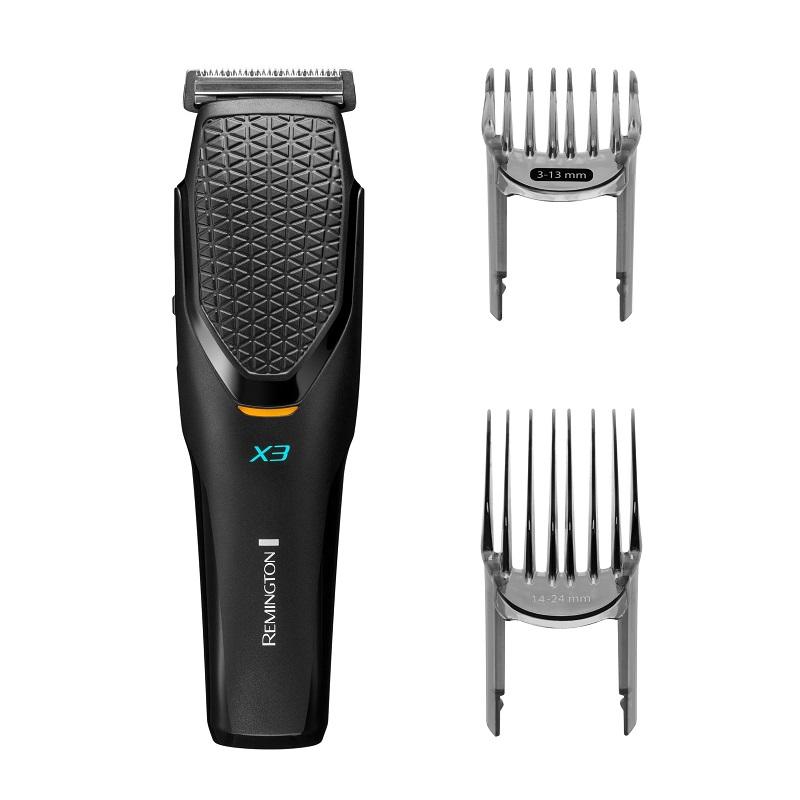 Remington Power X Series X3 hårklipperen HC3000 plejer dit hår og giver dig et godt udseende takket være de justerbare kamme med 22 længdeindstillinger og japanske knive i rustfrit stål. Den opladede enhed giver 45 minutters brugstid, og LED-displayet informerer dig om den aktuelle batteristatus.