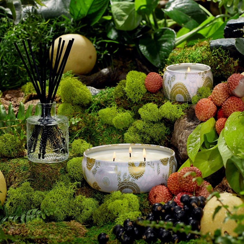 Voluspa dekorative bliklys Panjore Lychee 113g har en duft af litchifrugt med strejf af pære og vanilje.
