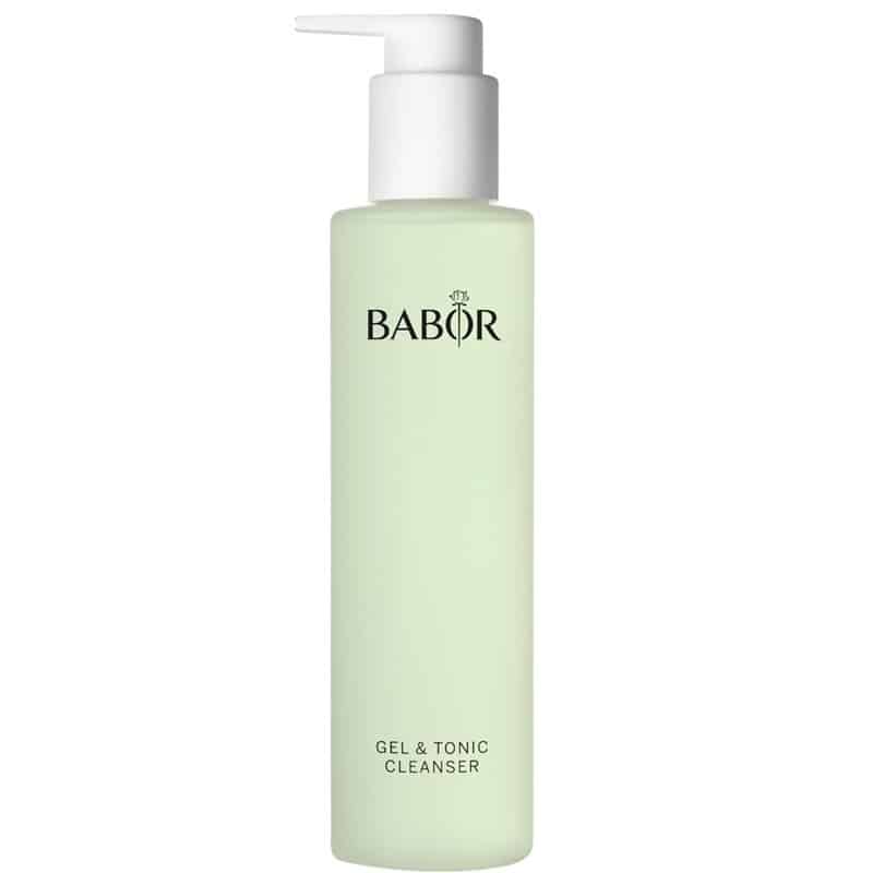 BABOR Gel & Tonic Cleanser on öljytön puhdistusgeeli ja kasvovesi kahdessa yhdessä. Tehokas puhdistus, joka ehkäisee epäpuhtauksia ja estää uusien muodostumisen. Sisältää talin tuotantoa tasapainottavaa sinkkiä sekä inkiväärin, rypäleen ja boswellian uutetta, joilla on supistava vaikutus. Moringansiemenproteiiniuutteet suojaavat ihoa ympäristön aiheuttamalta stressiltä. Nopea ja helppo käyttää, jättäen ihon puhtaaksi ja mattapintaiseksi. Suositellaan rasvaiselle ja aknealtille iholle.