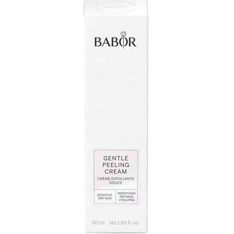 BABOR Gentle Peeling Cream on mieto kasvojen kuorintavoide, jossa on luonnollisen selluloosan ja jojobavahan kuorintahiukkasia, jotka tehokkaasti poistavat kuolleet ihosolut. Ihon uusiutuminen stimuloituu, ihon pinta tasoittuu, ja ihon kyky imeä seuraavat tuotteet paranee. Shea-voita ja manteliöljyä sisältävä pohja, johon on lisätty probiootteja, suojaa ihon rasvahappokalvoa ja ylläpitää mikrobiomin tasapainoa. Moringansiemenistä peräisin oleva proteiinieksraatti suojaa ihoa ympäristön haitallisilta vaikutuksilta. Antaa näkyvästi tasaisemman ja raikkaamman ihon luonnollisella hehkulla jo yhdellä käytöllä.