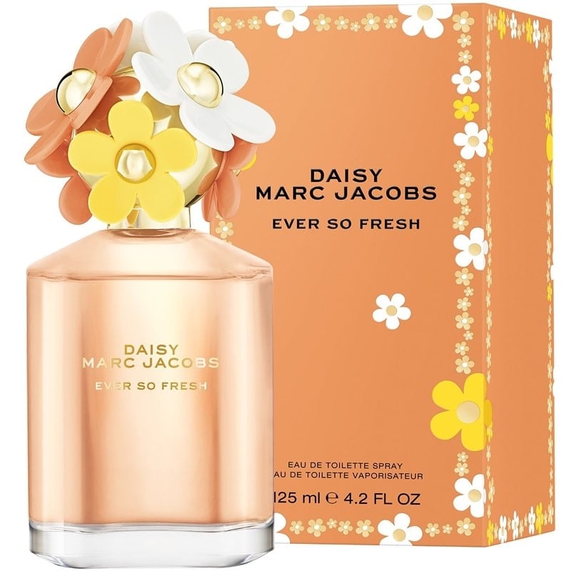 Kirkas. Elävä. Energisoiva. Esittelemme Daisy Ever So Freshin, Marc Jacobsin ikonisen Daisy-kokoelman uusimman tuoksun. Daisy Ever So Fresh on pitkäkestoinen tuoksu, jossa on aurinkoinen kimppu mehukkaita sitrusnuotteja, jotka yhdessä säihkivän ruusuveden kanssa tuovat mieleen kukkatuoksujen tuulahduksen. Kashmirpuu tuo tuoksuun ilmavan mutta energisen lämmön. Harmoniset nuotit luovat lumoavan vaikutelman ja tuoksun, joka kestää pitkään. Sen nuorekas viehätys inspiroi käyttäjää rohkeasti olemaan spontaani.