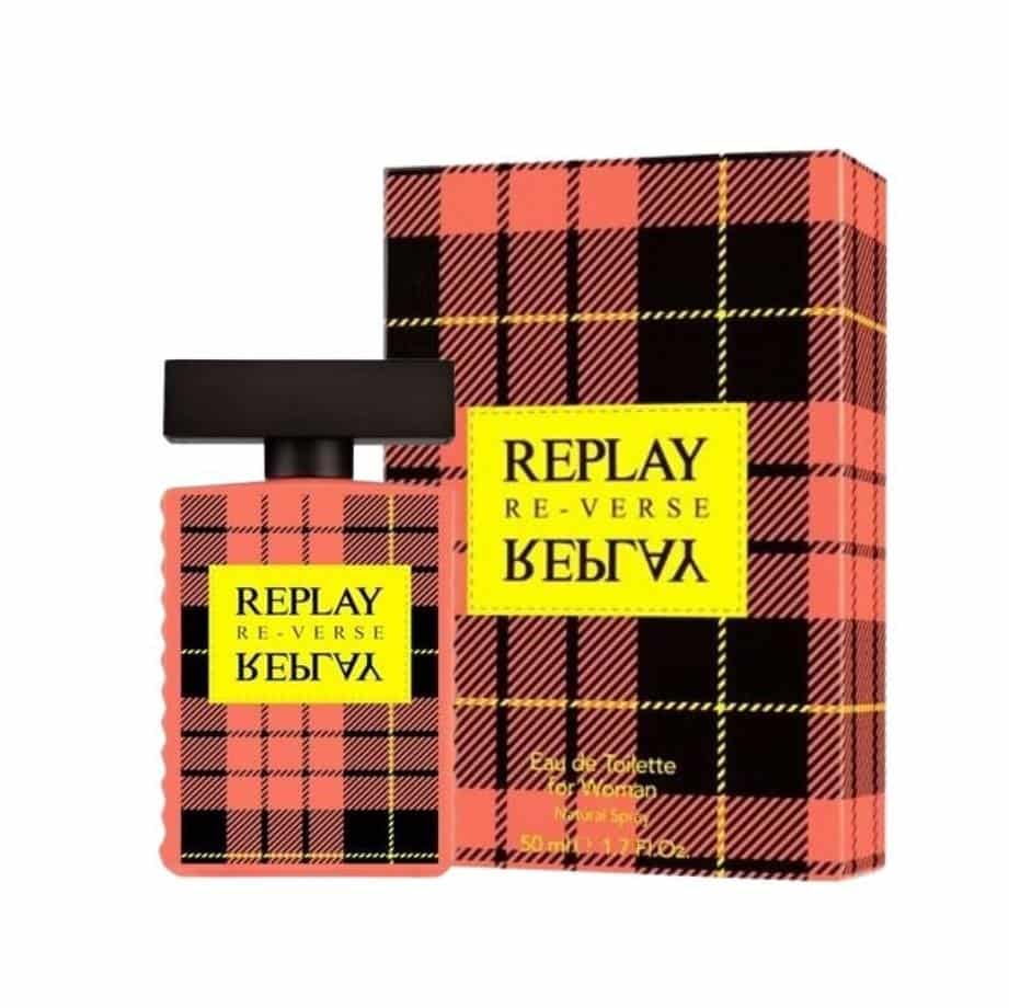 Replay Re-Versen naisversio kuuluu kukka-hedelmäiseen tuoksuperheeseen ja on runollinen luonne, jossa herkät terälehdet kohtaavat eloisia hedelmäisiä vivahteita. Omena- ja mansikka-akordit saavat uutta energiaa huipputuoksussa olevasta runsaasta greippistä. Sydäntuoksussa on jasmiinin ja pionin hienostunut kukkakimppu, jota korostavat pehmeä, samettinen myski ja pohjatuoksussa puumaiset harmonikat.