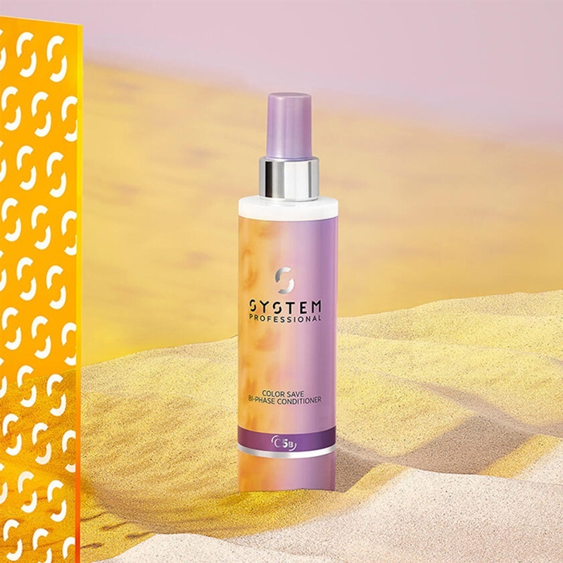 System Professional Color Save Bi-Phase Conditioner on kevyt leave-in-hoitoaine värjätyille hiuksille. Tämä leave-in-tuote sisältää värinhoitavia ainesosia, jotka tekevät hiuksista helpommin kammattavat ja suojaavat väriä. Se vähentää pörröisyyttä, selvittää hiuksia ja suojaa UV-säteilyltä. Maitomainen kaava sisältää värinhoitavia ainesosia, jotka auttavat estämään värin haalistumista, leviämistä ja raikkautensa menettämistä.