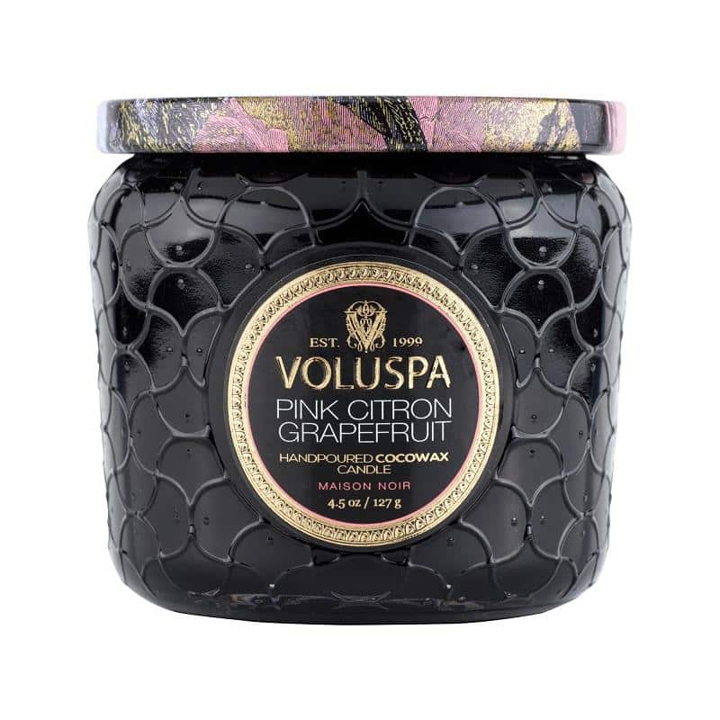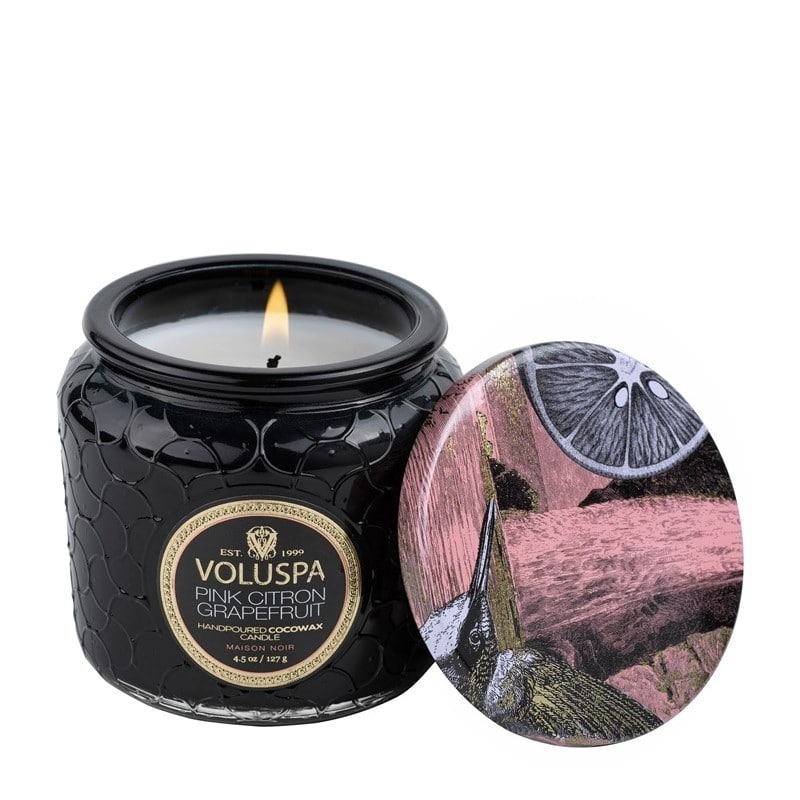 Voluspa Petite Jar Pink Lemon Greippi tuoksussa kypsää sitruunagreippiä, hapakasta cassista ja hienovaraista ruusua. Pink Citron Grepefruit on kevyen ja makean kesän tuoksun säde. Anna auringonpaisteen sisään!