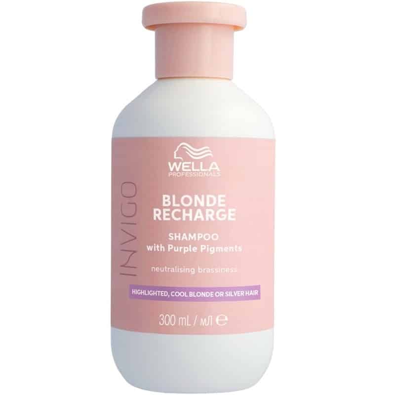 Wella Professionals Invigo Blonde Recharge Cool Blonde Shampoo on violetti shampoo hiuksille, joissa on vaaleita sävyjä. Tämä shampoo on täydellinen valinta estämään keltaisia sävyjä ja poistamaan mahdollinen kellastuminen luonnollisessa tai värjätyssä vaaleassa hiuksessa. Shampoon ravitsevat ainesosat kosteuttavat hiuksia ja tekevät niistä pehmeät ja sileät. Cool Blonde Color Refreshing Shampoo uudistaa ja säilyttää värin ja elinvoiman luonnollisissa tai raidoitetuissa vaaleissa sävyissä. Parhaan tuloksen saavuttamiseksi seuraa Wella Professionals Invigo Blonde Recharge Cool Blonde Conditioner -hoitoaineella. Rutiinisi raidoitetun, viileän vaalean tai hopeanvärisen hiuksen keltaisuuden neutralointiin.