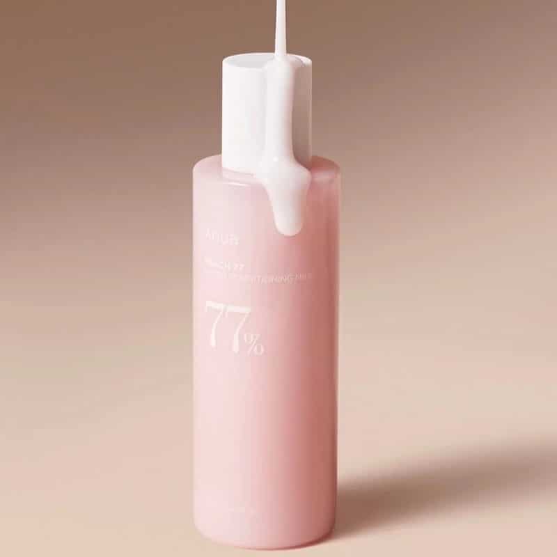 Peach 77% Niacin Conditioning Milk fra det prisbelønte merket Anua er en styrkende, lysnende og dypt fuktighetsgivende essens/lotion for alle hudtyper, inkludert sensitiv hud. Den er spesielt perfekt for deg som ønsker å oppnå glass-skin-effekt og en ferskensmyk base for sminke.