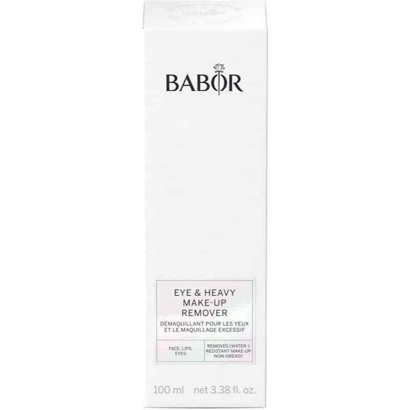 BABOR Eye & Heavy Make Up Remover er en to-fase renseprodukt for øyne og ansikt. En mild formel med utvalgte oljer som grundig fjerner vannfast sminke, samtidig som den er skånsom mot hud og øyevipper. Beriket med beroligende aloe vera, provitamin B5, E-vitamin og nattlysolje. Etterlater huden, øynene og leppene helt rene uten å etterlate fettete rester på huden.