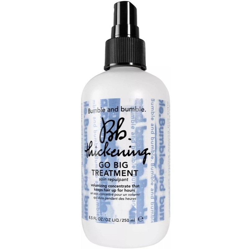 Bumble and bumble Thickening Go Big Plumping Treatment gir volum til både hverdag og fest. Denne leave-in-sprayen med Emblica-teknologi gjør hvert hårstrå fyldigere samtidig som den gir næring og fuktighet for mykt, luftig volum som varer hele dagen. Den pleier håret på alle måter, reduserer frizz hele dagen, styrker mot brekkasje og beskytter håret mot varmebehandling.
