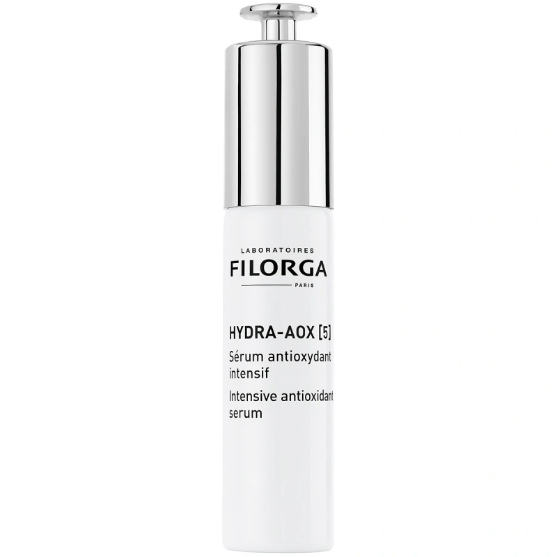 Filorga Hydra-AOX [5] er et intensivt antioksidantserum som jobber mot fine linjer og ujevn hudtekstur. Kraften fra 5 antioksidanter (astaxantin + ergotionin + vitamin C + vitamin E + vitamin B3) kombinert med hyaluronsyre beskytter huden mot aldring forårsaket av ytre påvirkninger* samtidig som det korrigerer eksisterende aldringstegn. Rynker jevnes ut, hudteksturen forbedres, og huden får en fornyet glød. Formelen har en lett konsistens og en naturlig oransje nyanse. Dermatologisk testet.