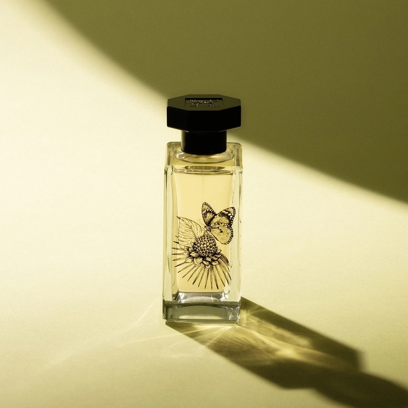 Ved kanten av en skoglysning strømmer et mildt lys over den nyvåkne naturen. Sommerfuglen flagrer i vinden, lander på blomstene og danser sin egen vals. Den berører alt og sprer sanselig det myke pudret med vingene sine. En flyktig duft av Jasminum grandiflorum og små hint av mandarin og labdanum virvler frem og tilbake. Sommerfuglens utsøkte duftspor.