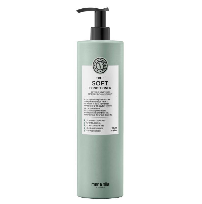 En pleiende balsam for tørt hår som fukter samtidig som den motvirker krus og statisk elektrisitet. Mykgjørende arganolje bevarer fuktighet, styrker håret og gir håret glans. True Soft Conditioner har en frisk blomsterduft av liljer, sjasmin og rose.