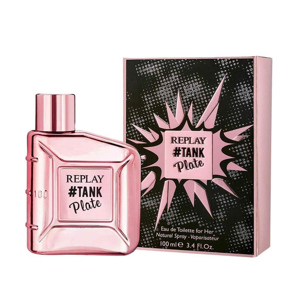 Replay #TANK Plate for Her har den originale tankformede flasken beriket med en iøynefallende rosa metallisk finish. Denne nye kreasjonen, dedikert til Replay-jenter, er en berusende duft som kombinerer feminin forførelse og fargerik lykke. Søte røde frukter leker med frisk fresia og myk mandel i toppnotene. Forførende hjertenoter av sjasmin, saftig fersken og pulveraktig iris er forseglet av kremet vanilje, rav og tonkabønner.