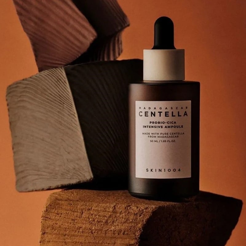 SKIN1004 Madagascar Centella Probio-Cica Intensive Ampoule er en høykonsentrert ampulle som gir maksimale beroligende effekter og styrker hudbarrierens evne til å reparere seg selv. Den absorberes lett inn i huden og etterlater en silkemyk finish uten rester eller klissete følelse.