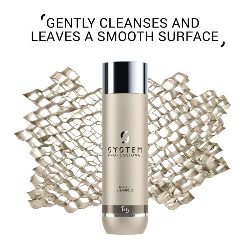 System Professional Repair-serien er utviklet for å reparere og styrke skadet og skjør hår. Den unike formelen inneholder avanserte FibraBuild-molekyler som reparerer, gir næring og fornyer skadde områder, og beskytter håret mot ytterligere stress.