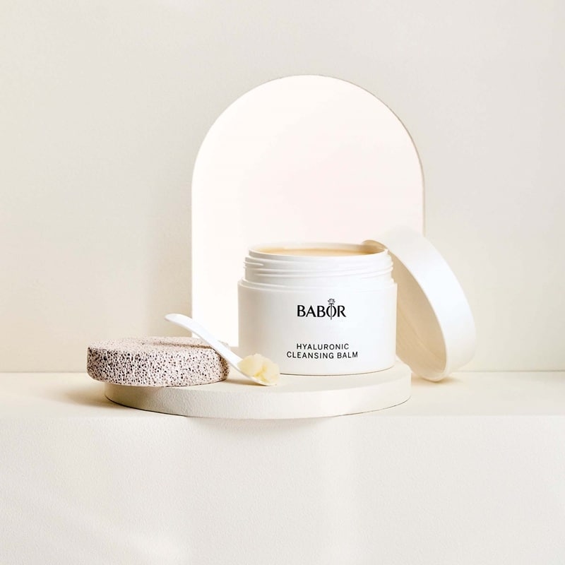 BABOR Hyaluronic Cleansing Balm är ett rengöringsbalm med naturliga, vattenälskade växtoljor som smälter i kontakt med huden. Marula-, argan- och macadamianötsolja binder och avlägsnar vatten- och fettlösliga substanser på huden vilket ger en effektiv men mild rengöring. Samtidigt som hudens naturligt skyddande barriär bevaras och bibehåller ett balanserat mikrobiom. Formulan innehåller 3D hyaluronsyra, känd för sin återfuktande och utfyllande effekt. Närande och fuktbevarande rengöring som skyddar huden från uttorkning och ger en ren, silkeslen hud. Speciellt rekommenderad torr och mogen hud.