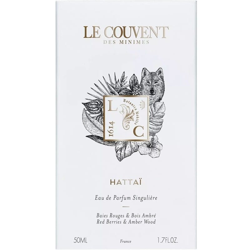 Le Couvent Singulière – Hattai Edp – Varghonans instinkt Långt bort i fjärran, ogenomtränglig skog så långt ögat når. Ett förtrollande landskap, en glödande mantel. Marken är täckt av rödskimrande löv. Plötsligt bryts tystnaden av varghonans mäktiga steg. I halvdunklet visar naturen sin kraft: en doft av ambraträ, en aning kakao, mjuk brännande rosépeppar. Varghonans undanglidande karaktär. 100% vegansk.