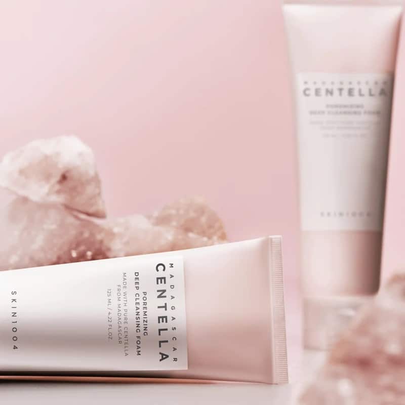 SKIN1004 Madagascar Centella Poremizing Deep Cleansing Foam är en allt-i-ett-rengöring för ansiktet med rosa himalayasalt. Tvättar grundligt bort solkrämsrester, döda hudceller och överflödig talg. Rosa himalayasalt och renat kaolin rengör porerna på djupet. Den krämiga pastan förvandlas till ett rikt skum på huden. Över 80 olika mineraler från himalayasaltet skapar ett osmotiskt tryck som effektivt avlägsnar orenheter från porerna. Innehåller lugnande centella asiatica-extrakt (cica/sallatsspikblad) från Madagaskar, SKIN1004s unika signaturingrediens. Papain (proteinnedbrytande enzym från papayafrukt) och vinäger hjälper till att avlägsna döda hudceller så att huden blir slät och silkeslen. Krämen är testad för att passa alla hudtyper, inklusive känslig och lättirriterad hud.